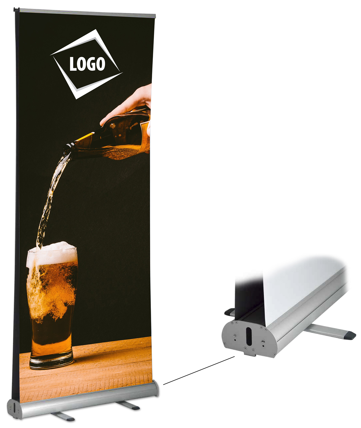 Les bannières rétractables appelé aussi « rollup banner », « pullup banner », bannières déroulantes, personnalisés augmentent votre visibilité lors de salons et expositions et est très rapide à installer.